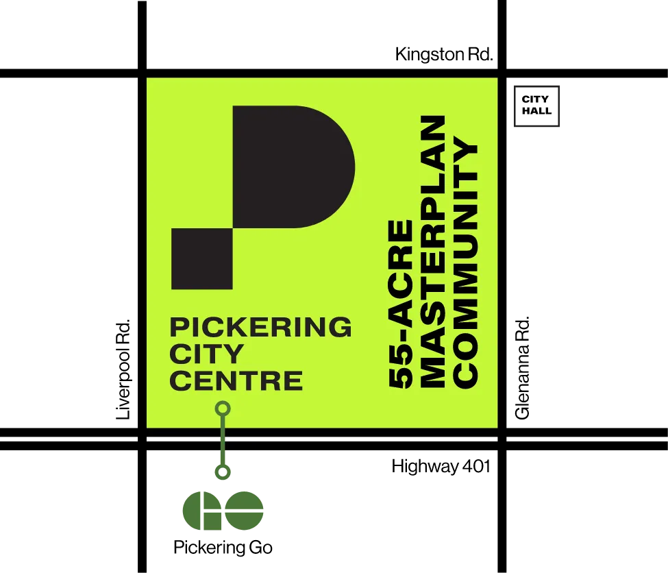 Strategic location in Pickering's city center, recognized as an Urban Growth Centre and Mobility Hub.